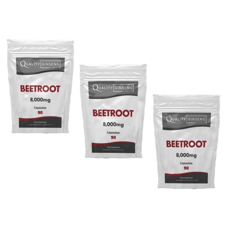 - Equivalent to 8,000mg dried Beetroot
