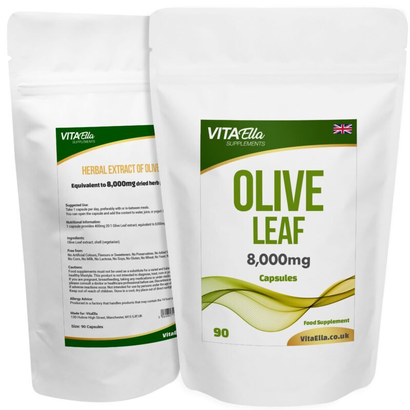 - Equivalent to 8,000mg dried Olive Leaf